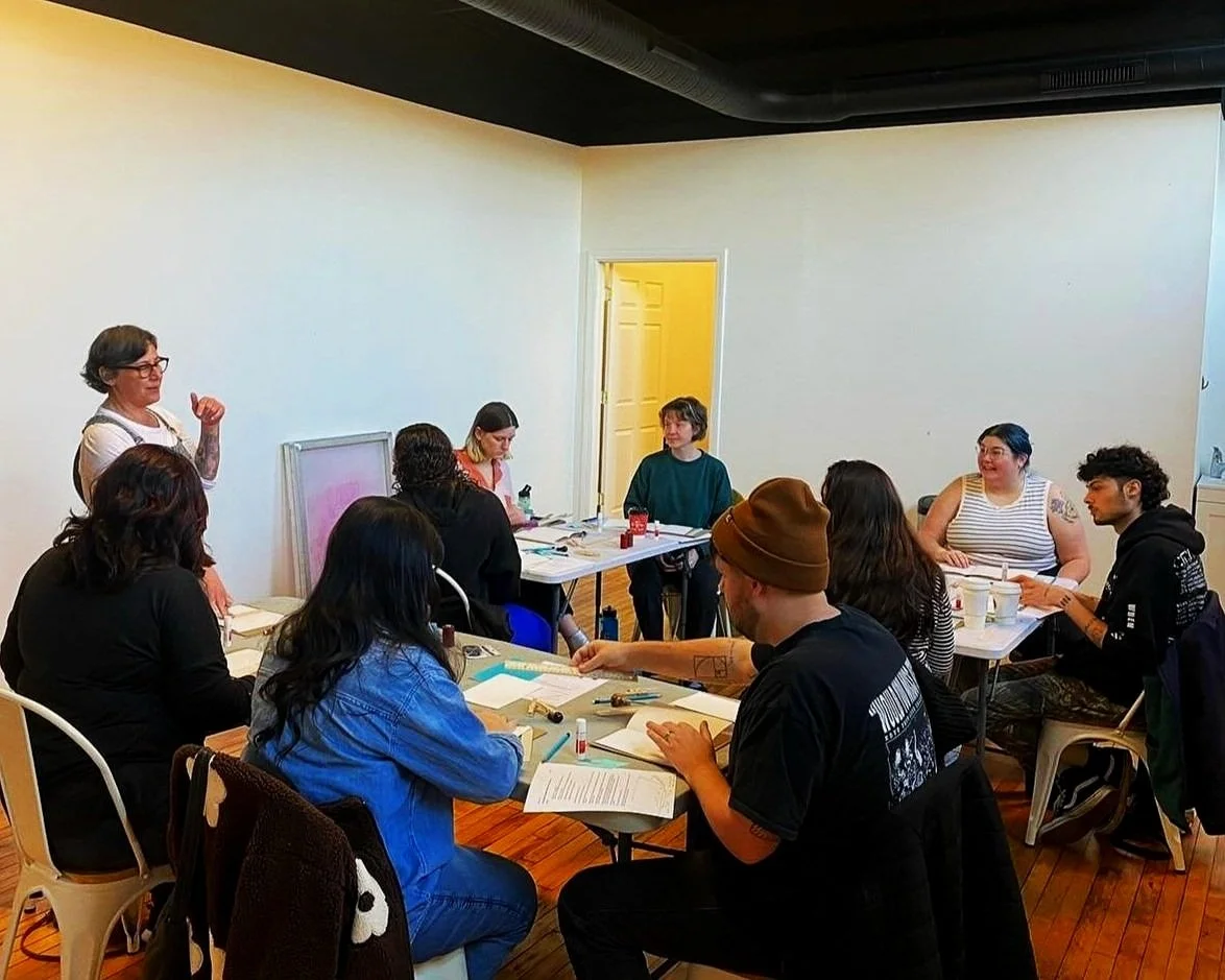 Community and accessibility. Our mission is to make the democratic art forms of printmaking and book arts more accessible to our community by providing affordable workshops, classes, and sliding-scale co-op memberships.